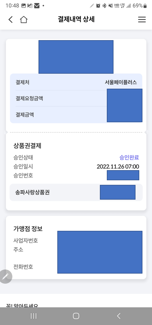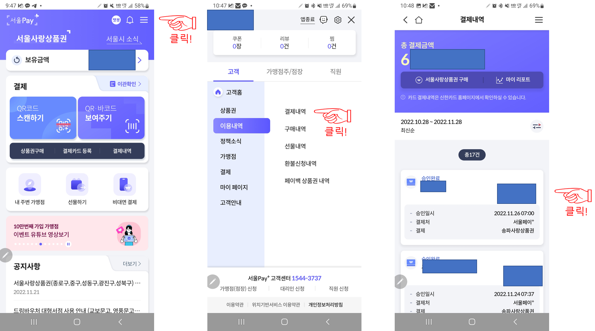서울페이 (서울Pay+) 사용해서 결제를 했을 때 영수증을 출력해서 증빙해야 하는데 서울페이 앱을 아무리 찾아봐도 영수증을 발급 받는 방법을 못 찾았습니다. 인터넷에 검색을 해도 나와있지 않아 서울페이 상담센터에 전화를 해서 방법을 알아냈습니다.
